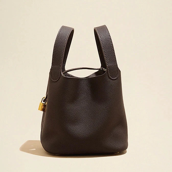 Le cabas Épure chocolat incarne l’équilibre parfait entre sobriété et élégance.